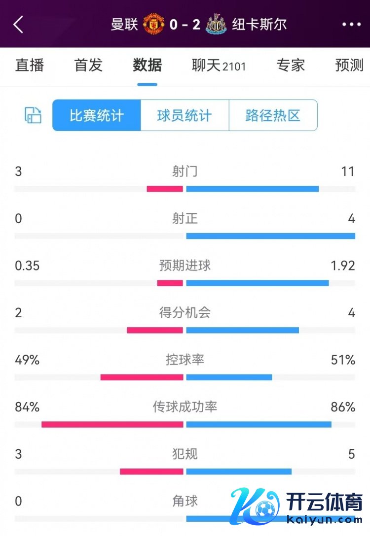 12月31日讯 曼联在本轮英超主场上半场0-2逾期纽卡,两队半场数据如下: