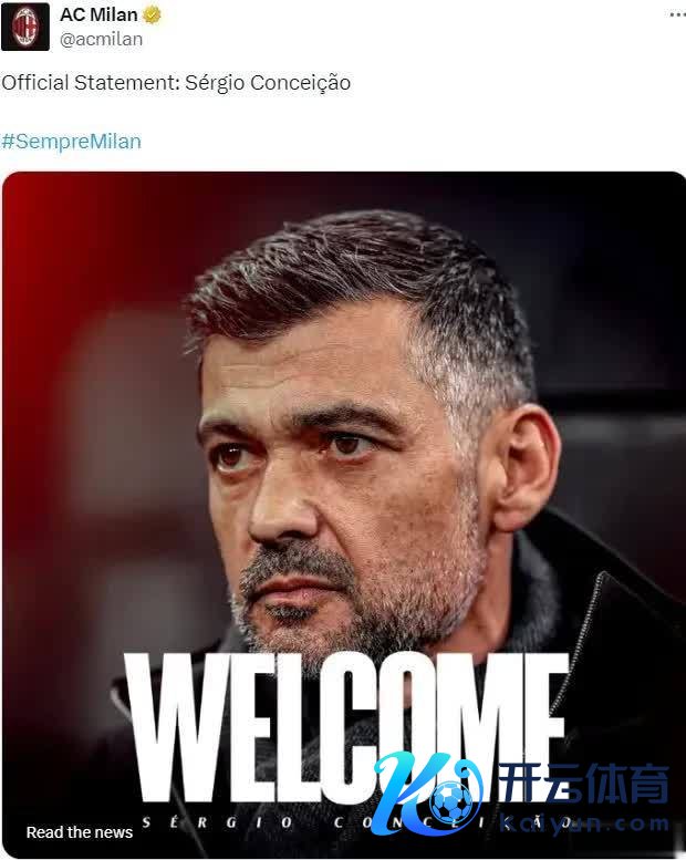 官方:米兰晓谕孔塞桑成为了球队新主帅,他们最近刚刚晓谕奉命了丰塞卡。