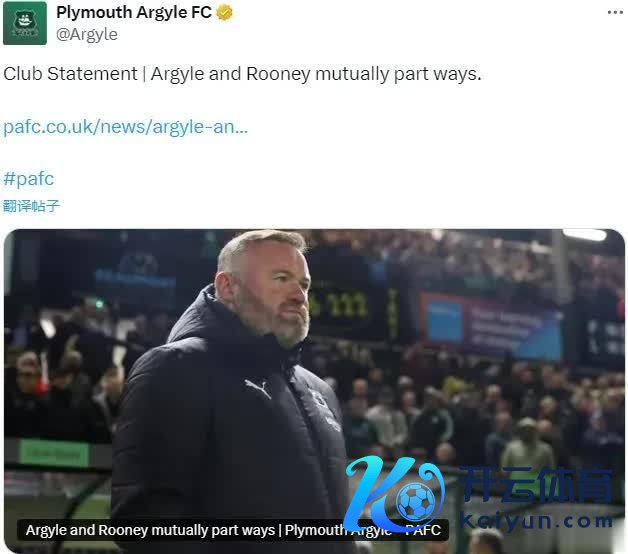 官方:普利茅斯晓谕奉命鲁尼,曼联传闻只是执教这支英冠球队7个月便被卷铺盖。